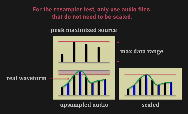 If the resampler does not scale the values, clipping occurs. This also distorts the test results.